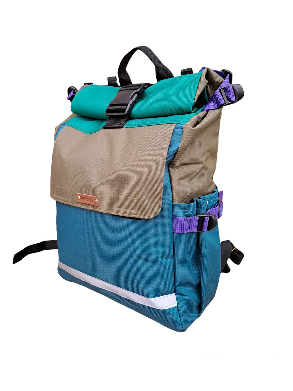 Mochila Rolltop Turquesa /Olivo /Verde claro
